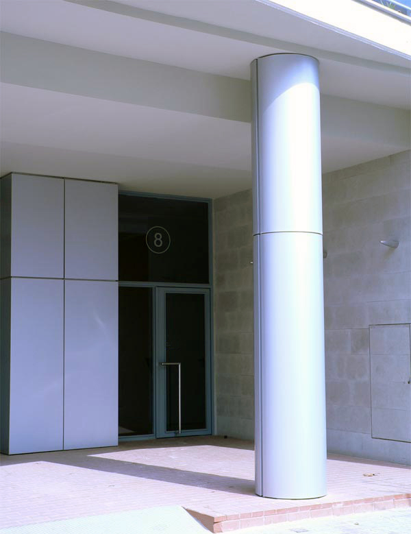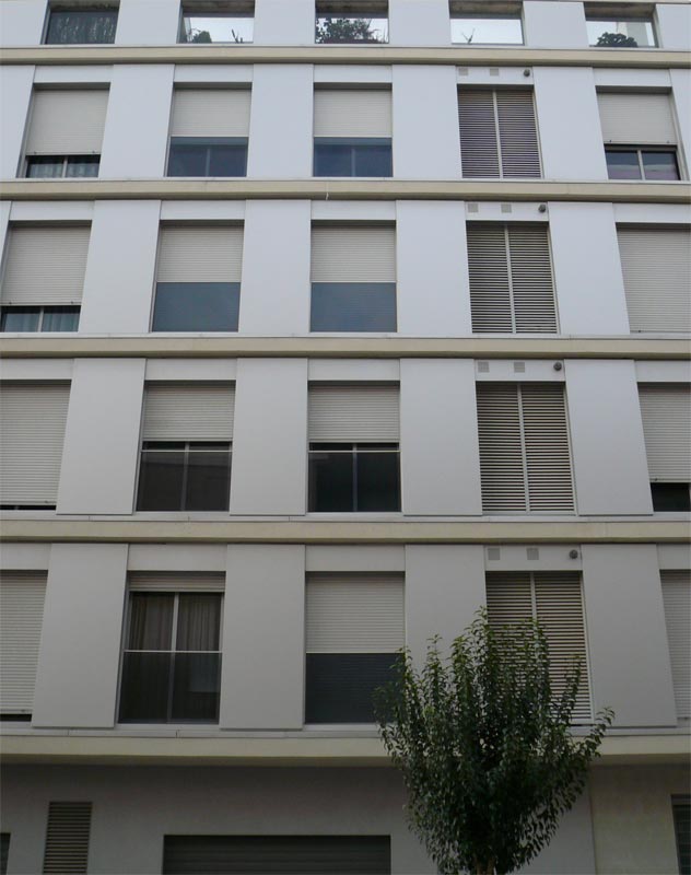 La calidad del revestimiento de paneles de aluminio, así como la sobriedad de la composición de las fachadas, aseguran la permanencia del edificio.