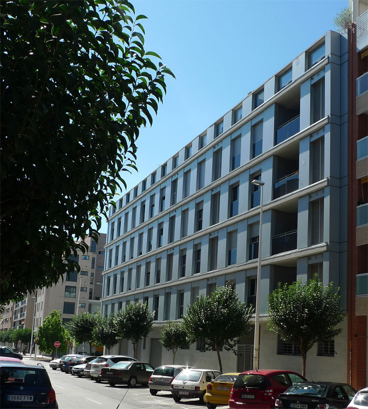 El solar se encuentra en la esquina de una manzana del ensanche de la ciudad de Catarroja. Mediante un Estudio de Detalle, se reduce la excesiva profundidad edificable del planeamiento, a catorce metros y medio, de modo que las viviendas dispongan de dos fachadas opuestas lo que mejora las condiciones de iluminación y ventilación.