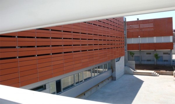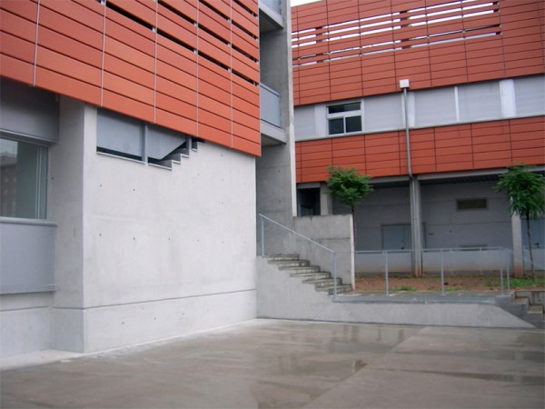 El programa requerido para la ampliación se desarrolla en un nuevo bloque, perpendicular al edificio aulario de la primera fase, conectado mediante una pasarela-puente a la escalera principal.