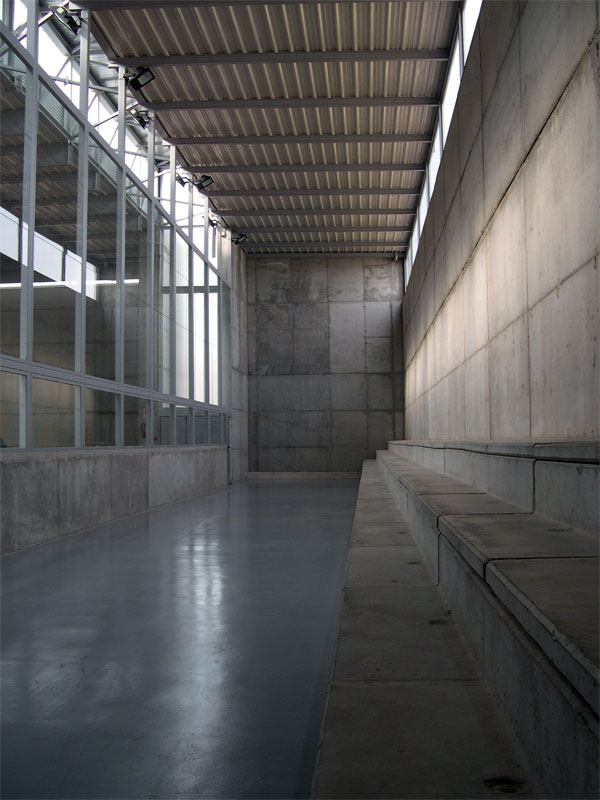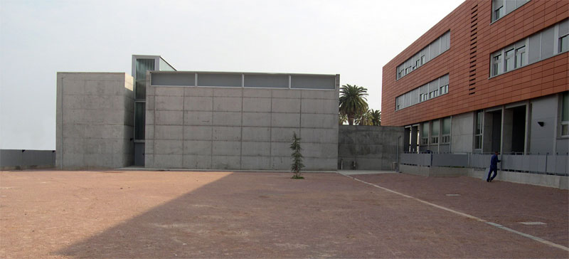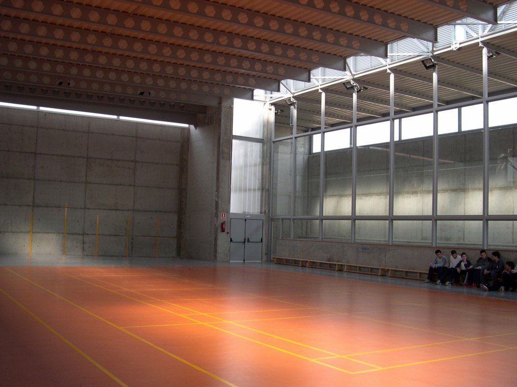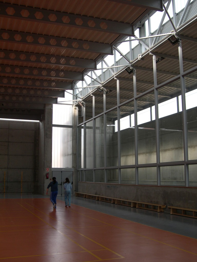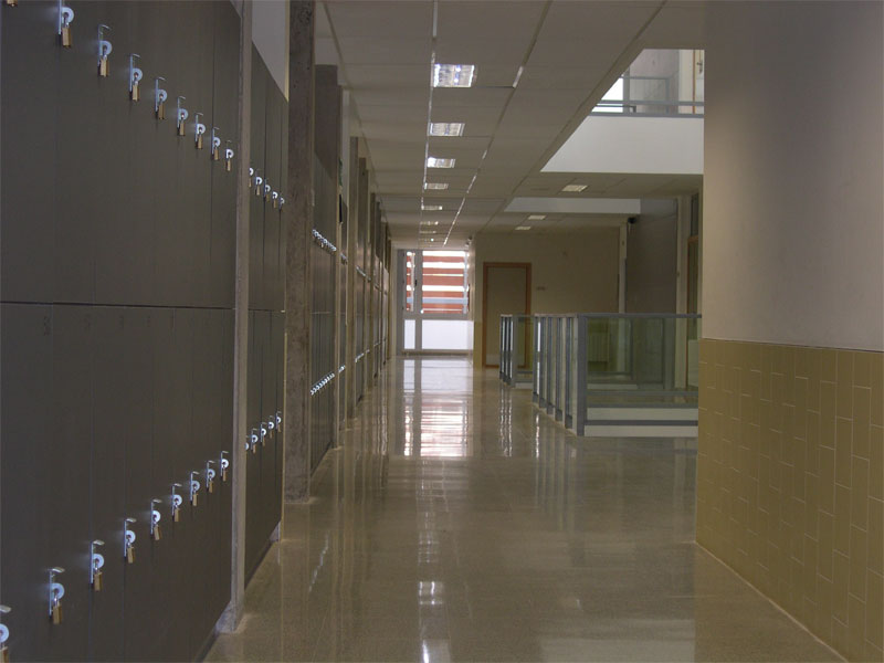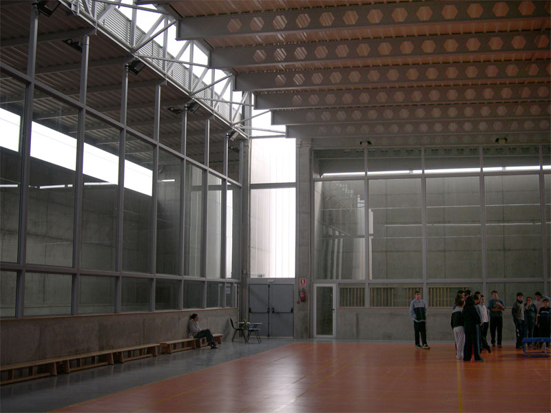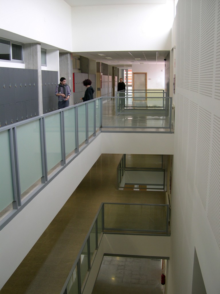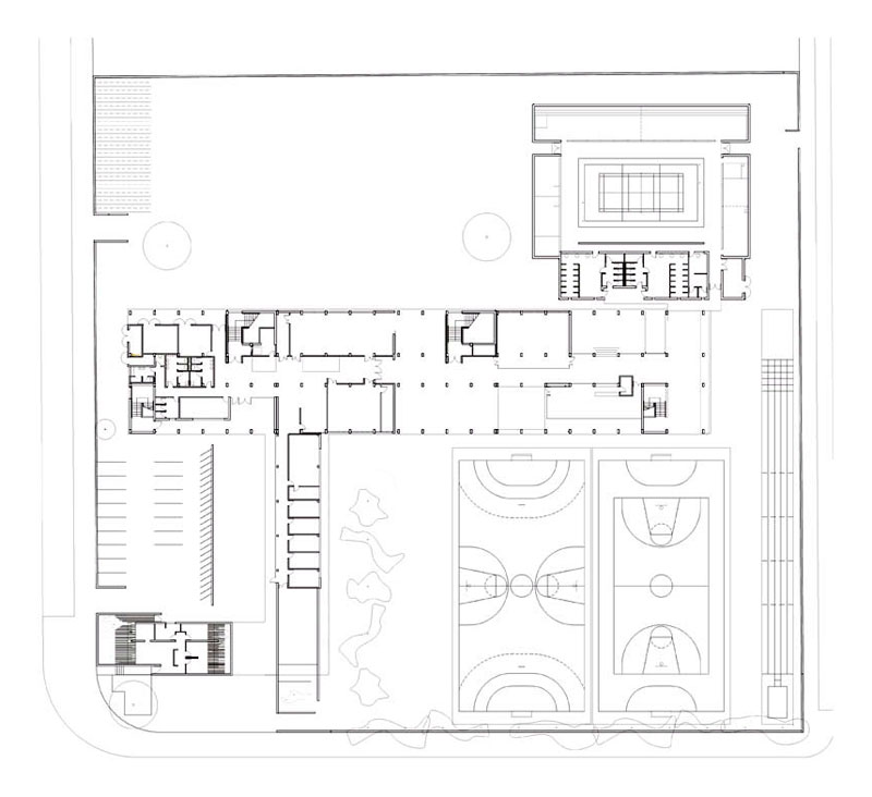 La disposición de la edificación atiende a la configuración y equilibrio de los diversos usos del programa exterior: acceso, pistas deportivas y áreas de juego,…. El edificio principal aulario resuelto mediante corredor central, con una anchura suficiente para permitir la ubicación de servicios y huecos, incrementando así la relación espacial de las circulaciones y la relación social de los alumnos.