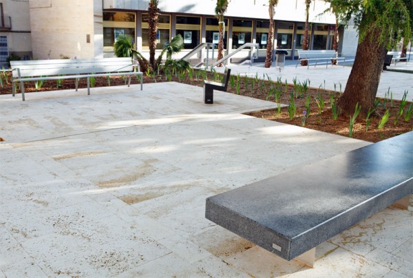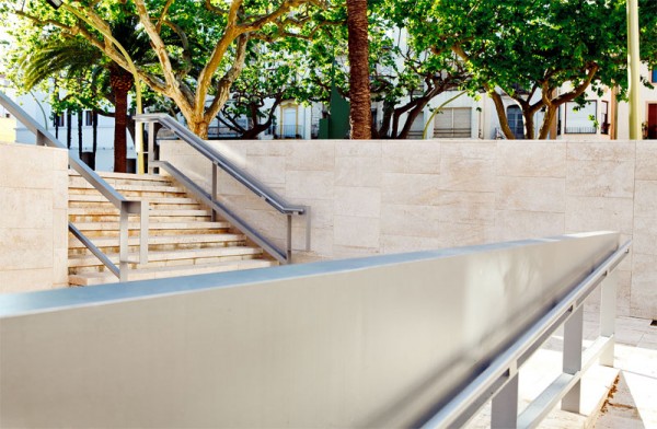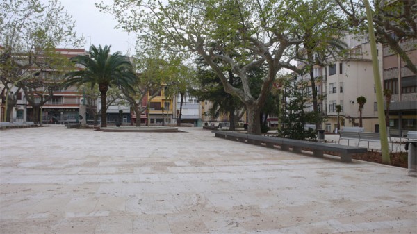El proyecto se basa en la selección y mantenimiento de las especies vegetales, la ampliación de los ámbitos peatonales más allá de los límites existentes y la ocupación de los espacios residuales mediante una cubierta verde soportada por los troncos de las palmeras. Mientras las zonas peatonales se pavimentan con losas de travertino empleando una modulación que permite organizar desde los parterres hasta el mobiliario urbano; las calles y sus aceras se resuelven con adoquín de hormigón, incorporando el travertino para los bordillos, rígolas y encintados.
