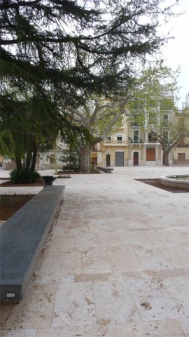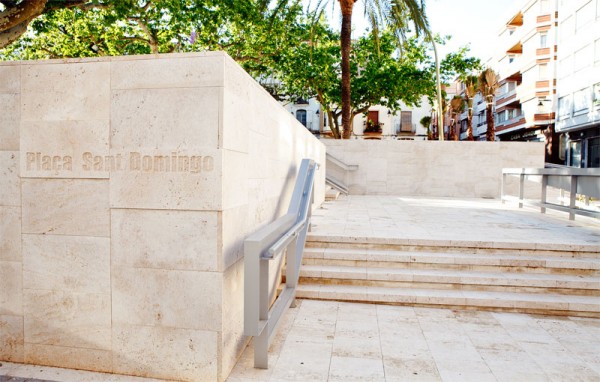 Espacio público en el centro histórico. Nuestra oficina ganó el concurso para la reurbanización de la Plaza de Sant Domingo convocado por el Ayuntamiento en dos mil cinco. El objeto del mismo era la renovación de las infraestructuras así como su pavimentación para permitir, de este modo, un cambio en la tendencia de abandono y degradación.